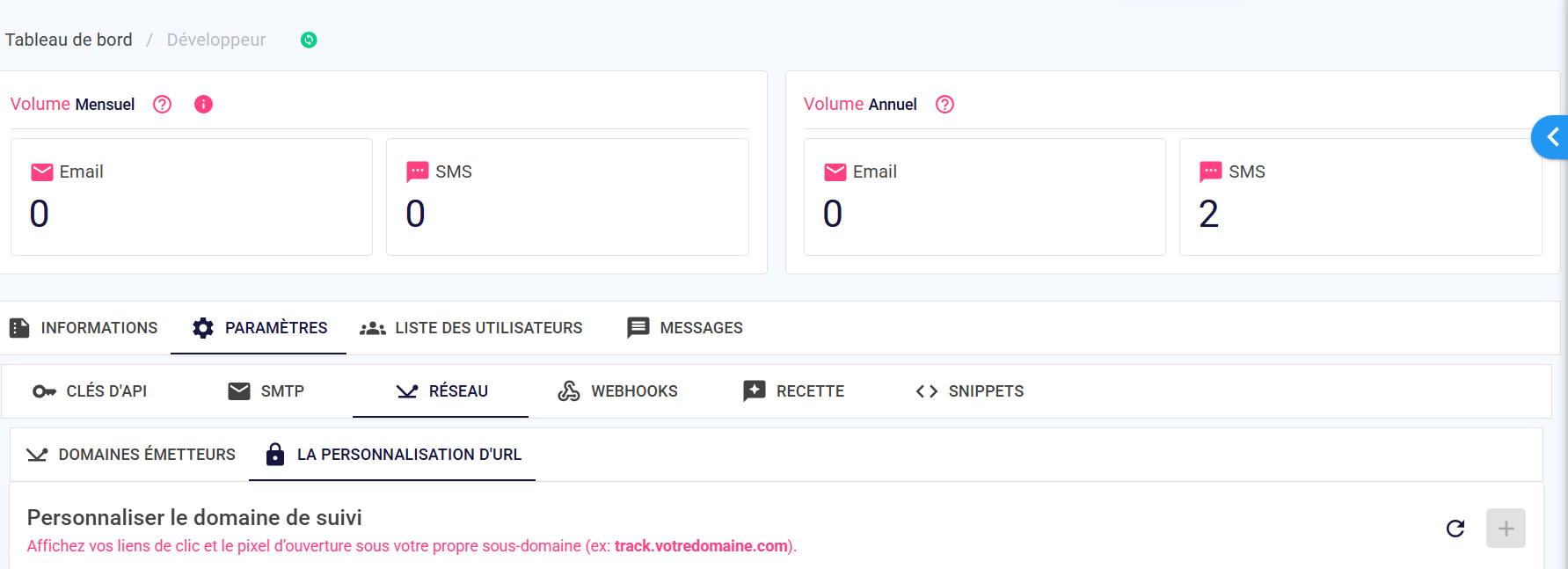 Dans cette section, vous pouvez ajouter votre domaine de suivi et vérifier que la configuration DNS est correcte.